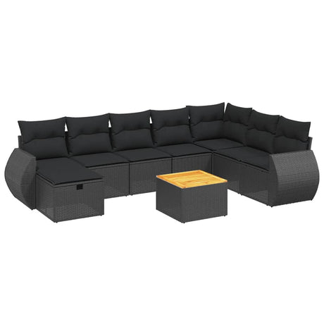 9 Piece Garden Sofa Set with Cushions Black Poly Rattan