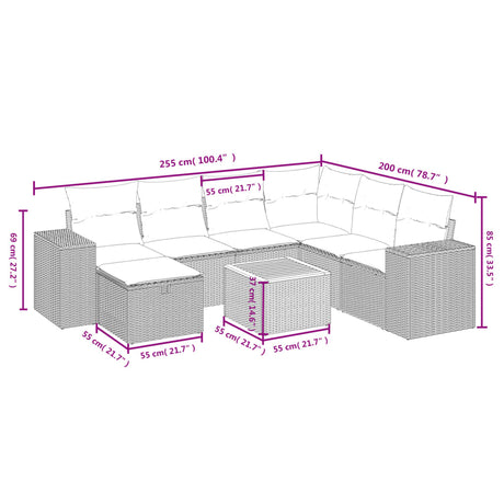 8 Piece Garden Sofa Set with Cushions Grey Poly Rattan