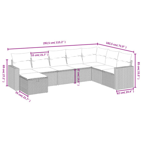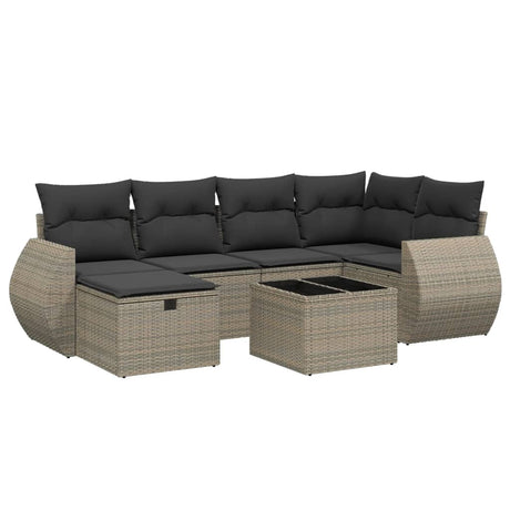 7 Piece Garden Sofa Set with Cushions Grey Poly Rattan