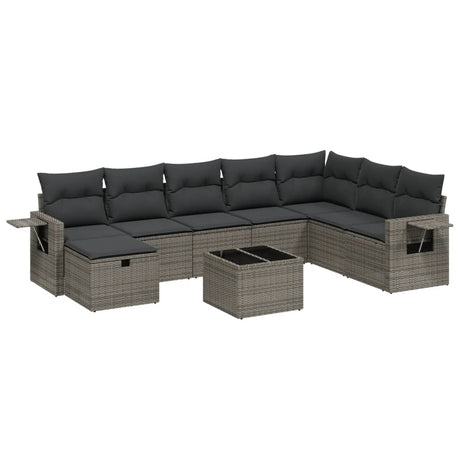 9 Piece Garden Sofa Set with Cushions Grey Poly Rattan