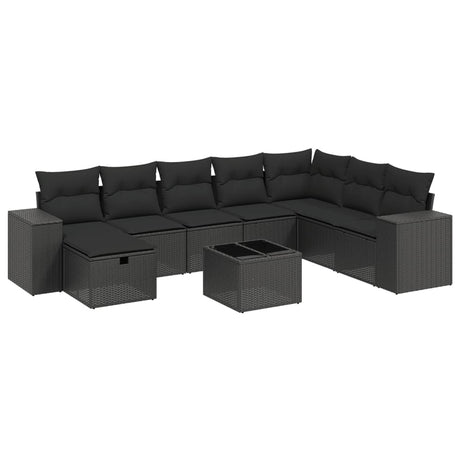 9 Piece Garden Sofa Set with Cushions Black Poly Rattan
