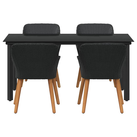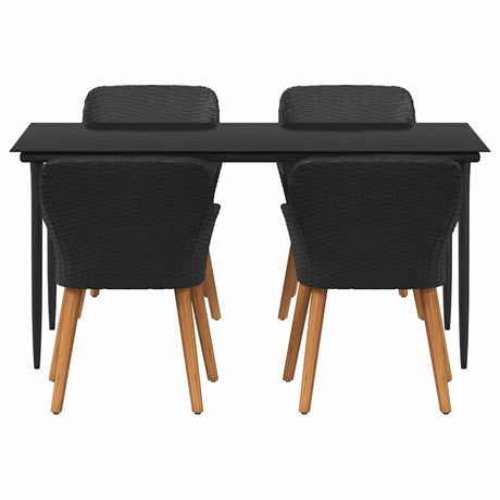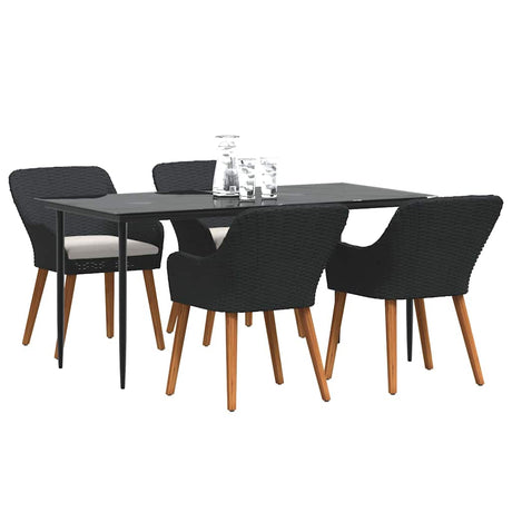 Garden Dining Set with Cushion 5 pcs Black Poly Rattan