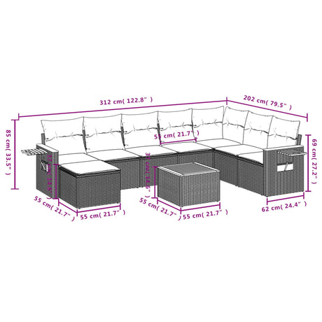 9 Piece Garden Sofa Set with Cushions Beige Poly Rattan