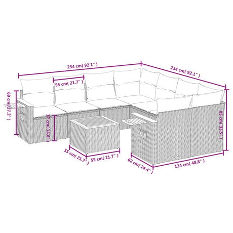 9 Piece Garden Sofa Set with Cushions Grey Poly Rattan