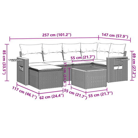 6 Piece Garden Sofa Set with Cushions Beige Poly Rattan