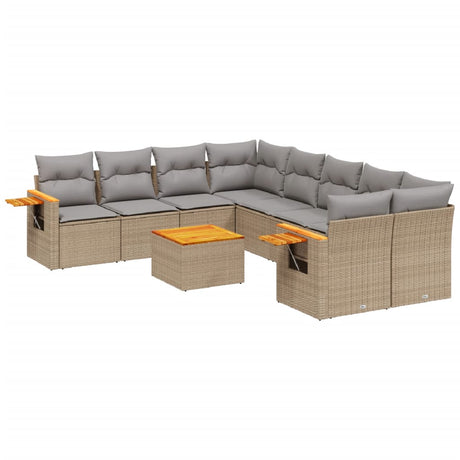 10 Piece Garden Sofa Set with Cushions Beige Poly Rattan