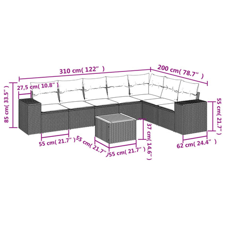 8 Piece Garden Sofa Set with Cushions Beige Poly Rattan