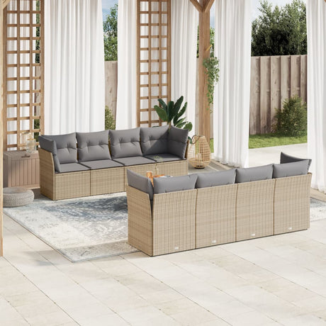 9 Piece Garden Sofa Set with Cushions Mix Beige Poly Rattan