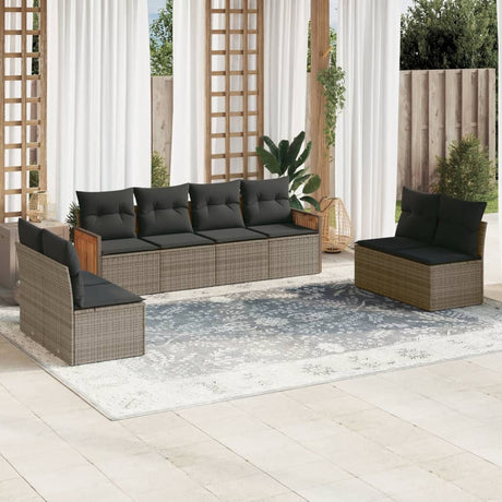 8 Piece Garden Sofa Set with Cushions Grey Poly Rattan