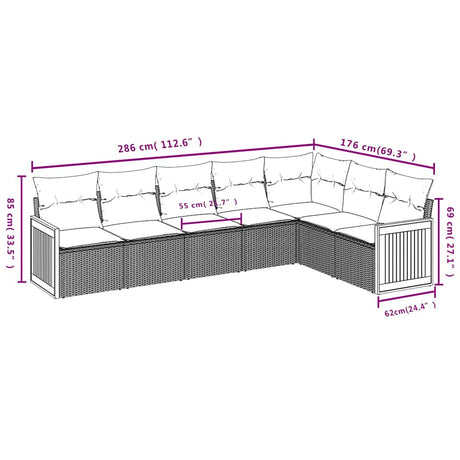 6 Piece Garden Sofa Set with Cushions Black Poly Rattan