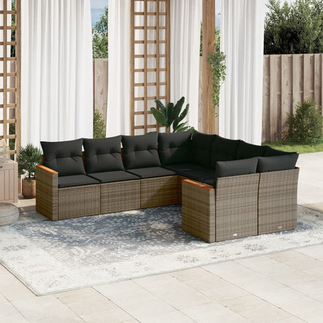 8 Piece Garden Sofa Set with Cushions Grey Poly Rattan
