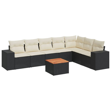 8 Piece Garden Sofa Set with Cushions Black Poly Rattan