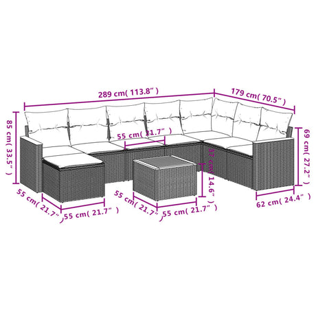9 Piece Garden Sofa Set with Cushions Grey Poly Rattan