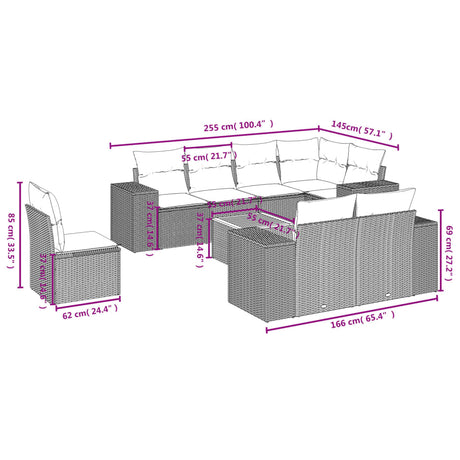 9 Piece Garden Sofa Set with Cushions Beige Poly Rattan