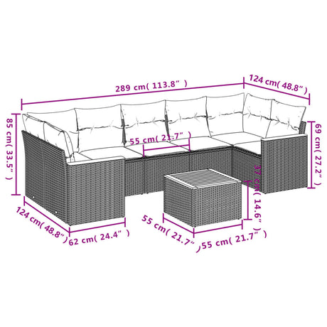 8 Piece Garden Sofa Set with Cushions Grey Poly Rattan