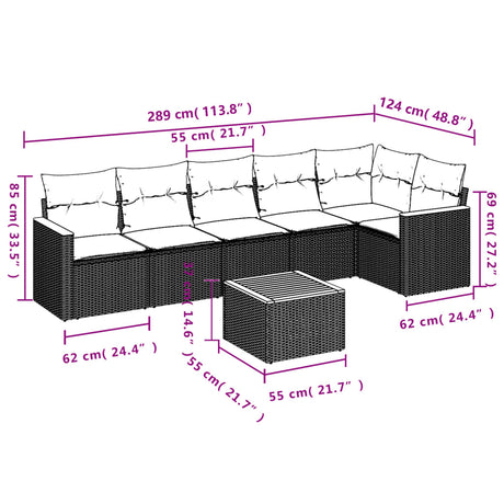 7 Piece Garden Sofa Set with Cushions Black Poly Rattan