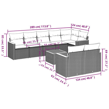 8 Piece Garden Sofa Set with Cushions Grey Poly Rattan