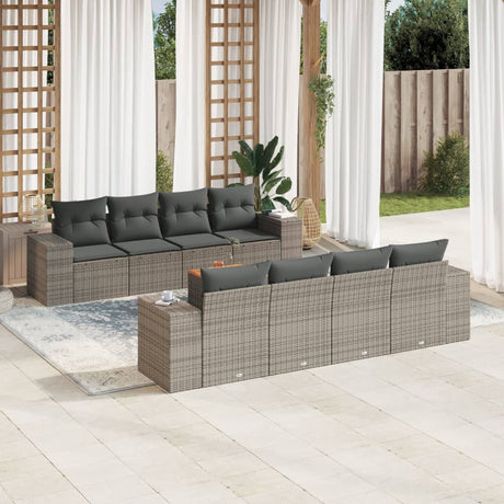 9 Piece Garden Sofa Set with Cushions Grey Poly Rattan
