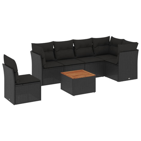 7 Piece Garden Sofa Set with Cushions Black Poly Rattan