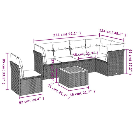 7 Piece Garden Sofa Set with Cushions Grey Poly Rattan