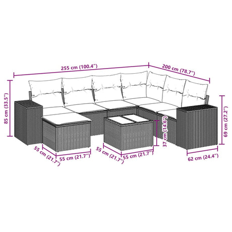 8 Piece Garden Sofa Set with Cushions Beige Poly Rattan