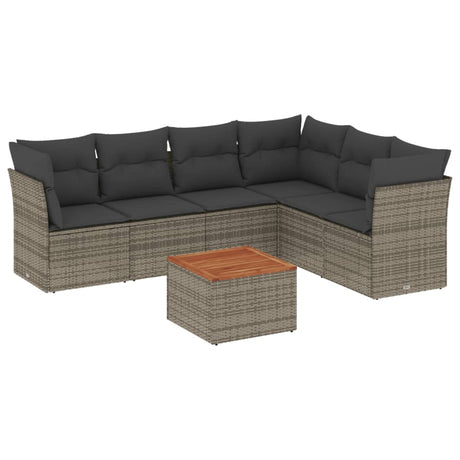 7 Piece Garden Sofa Set with Cushions Grey Poly Rattan