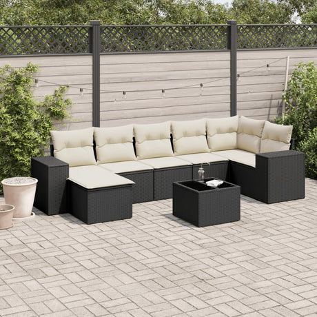 8 Piece Garden Sofa Set with Cushions Black Poly Rattan