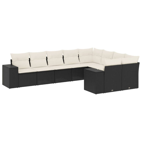 9 Piece Garden Sofa Set with Cushions Black Poly Rattan