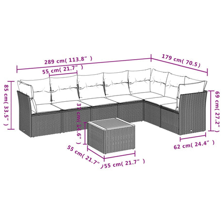 7 Piece Garden Sofa Set with Cushions Grey Poly Rattan