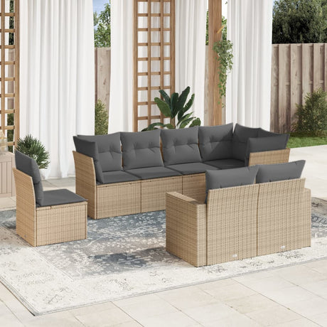8 Piece Garden Sofa Set with Cushions Beige Poly Rattan