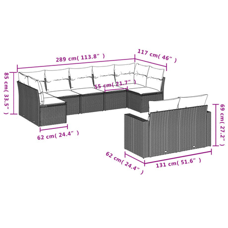 8 Piece Garden Sofa Set with Cushions Black Poly Rattan