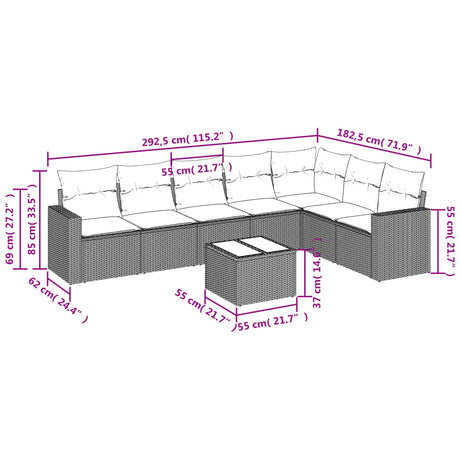 7 Piece Garden Sofa Set with Cushions Grey Poly Rattan