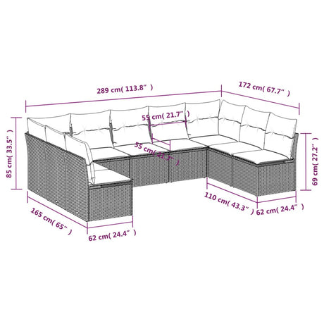 9 Piece Garden Sofa Set with Cushions Beige Poly Rattan