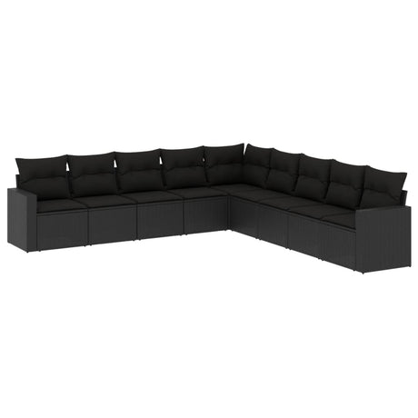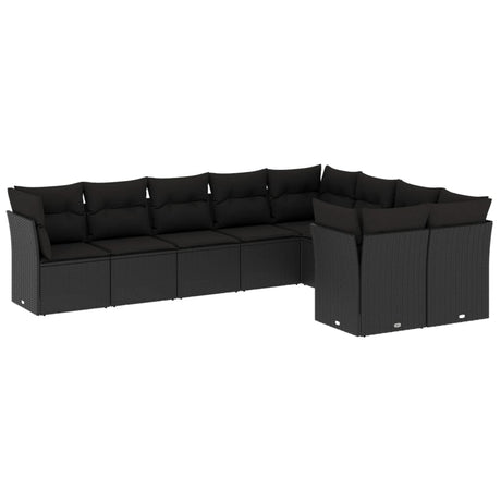 9 Piece Garden Sofa Set with Cushions Black Poly Rattan