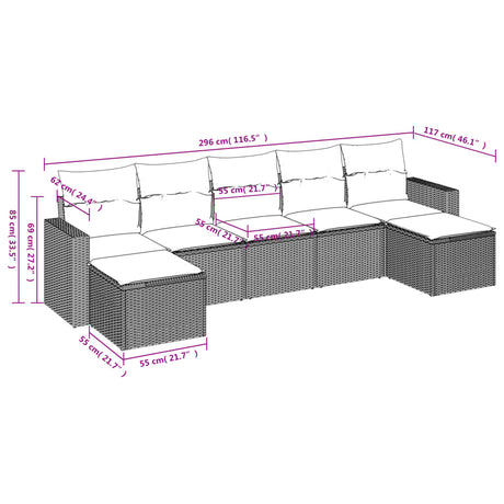 6 Piece Garden Sofa Set with Cushions Grey Poly Rattan