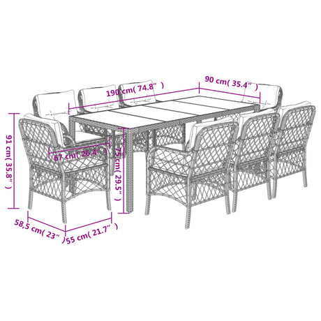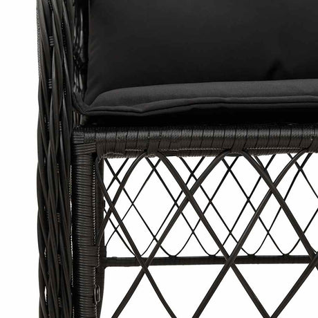 9 Piece Garden Dining Set with Cushions Black Poly Rattan