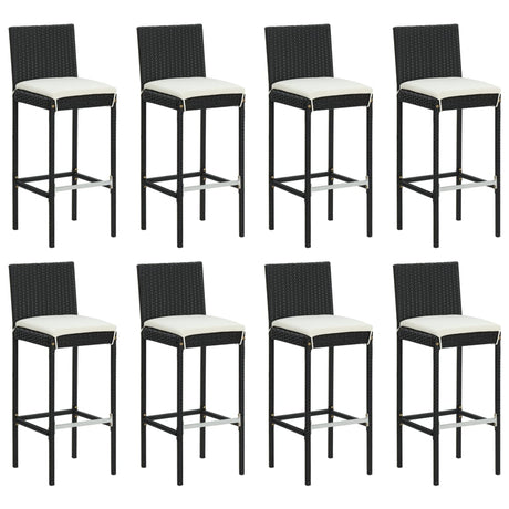 9 Piece Outdoor Bar Set with Cushions Black Poly Rattan