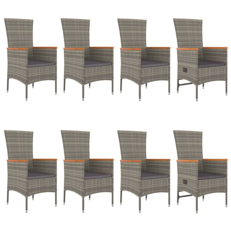 9 Piece Garden Dining Set with Cushions Grey Poly Rattan