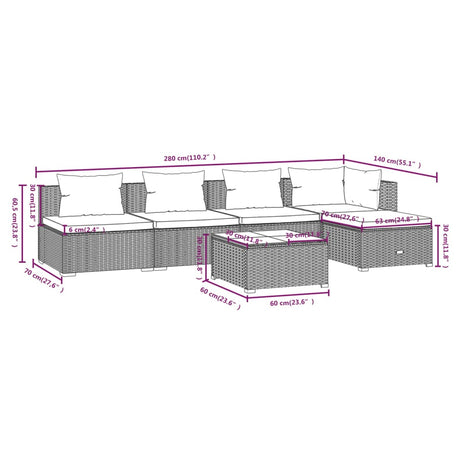 6 Piece Garden Lounge Set with Cushions Poly Rattan Grey