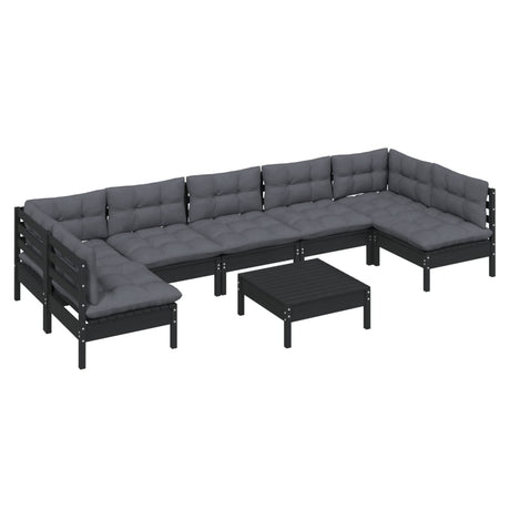 8 Piece Garden Lounge Set with Cushions Black Solid Pinewood