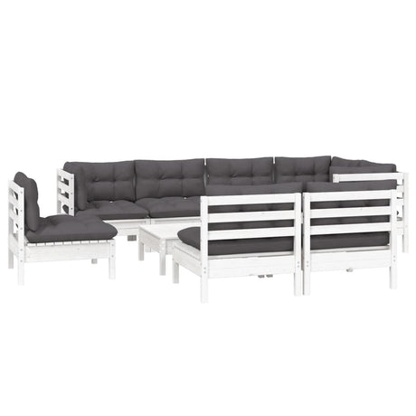 9 Piece Garden Lounge Set with Cushions White Pinewood