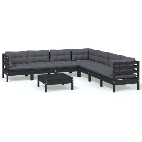 9 Piece Garden Lounge Set with Cushions Black Solid Pinewood