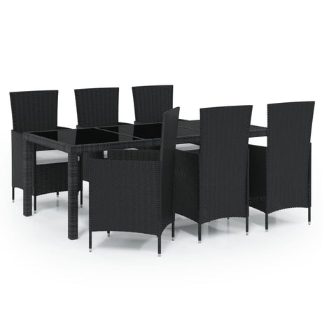 7 Piece Garden Dining Set with Cushions Poly Rattan Black