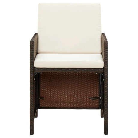 9 Piece Garden Dining Set with Cushions Poly Rattan Brown