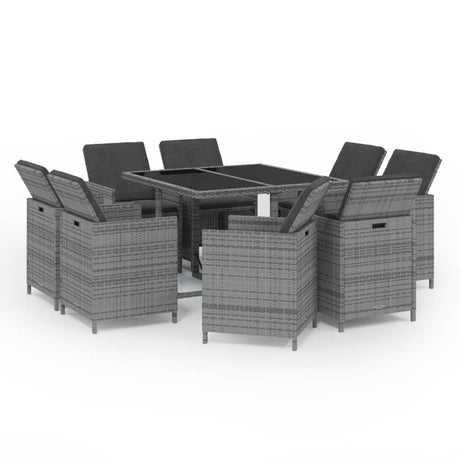 9 Piece Garden Dining Set with Cushions Poly Rattan Grey