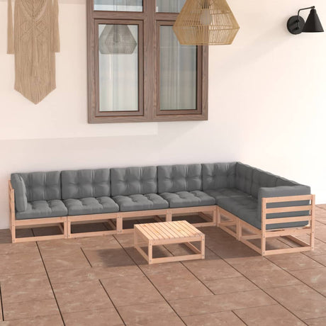 8 Piece Garden Lounge Set with Cushions Solid Pinewood