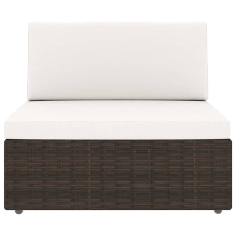 9 Piece Garden Lounge Set with Cushions Brown Poly Rattan
