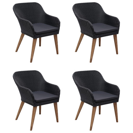 5 Piece Garden Bar Set with Cushions Poly Rattan Black