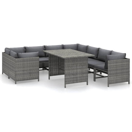9 Piece Garden Lounge Set with Cushions Poly Rattan Grey