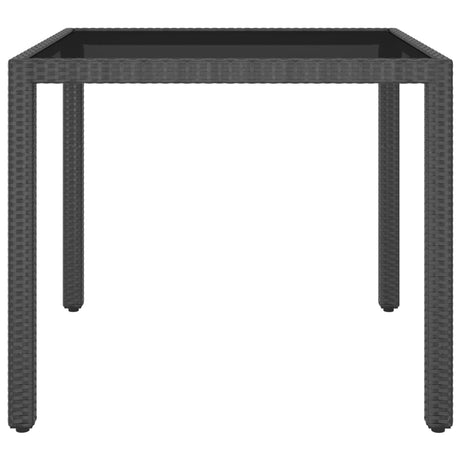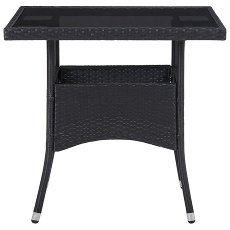 7 Piece Garden Dining Set Poly Rattan and Tempered Glass Black